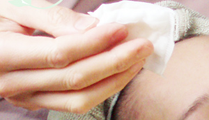 刺激緩和作用・抗炎症作用のある 化粧水を塗布します。 -