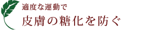 糖化とは、タンパク質と糖が結びつき変質してしまう現象で、皮膚で糖化が起こるとコラーゲンやエラスチンを硬くし、張りや弾力を失わせます。適度な運動は糖化を防ぐ作用があります。