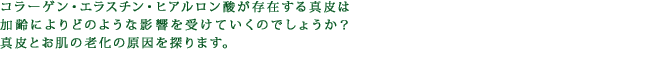 コラーゲン・エラスチン・ヒアルロン酸が存在する真皮は加齢によりどのような影響を受けていくのでしょうか?真皮とお肌の老化の原因を探ります。